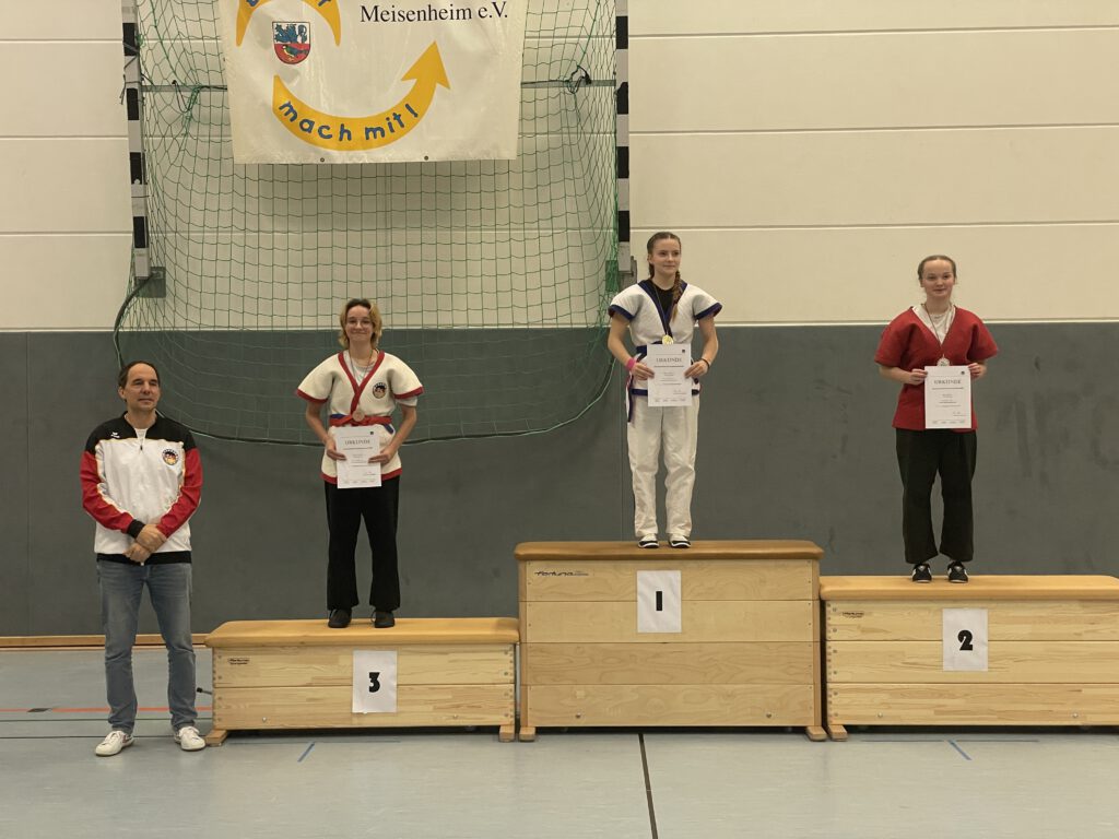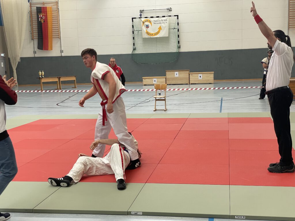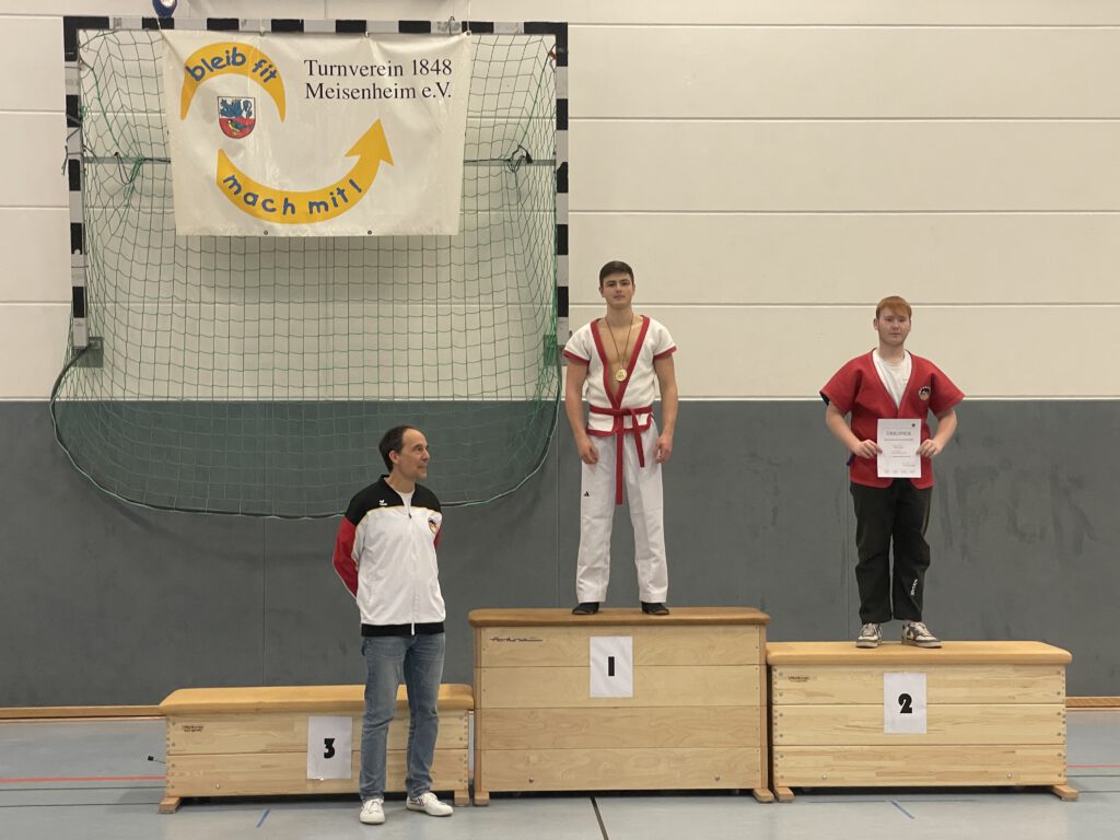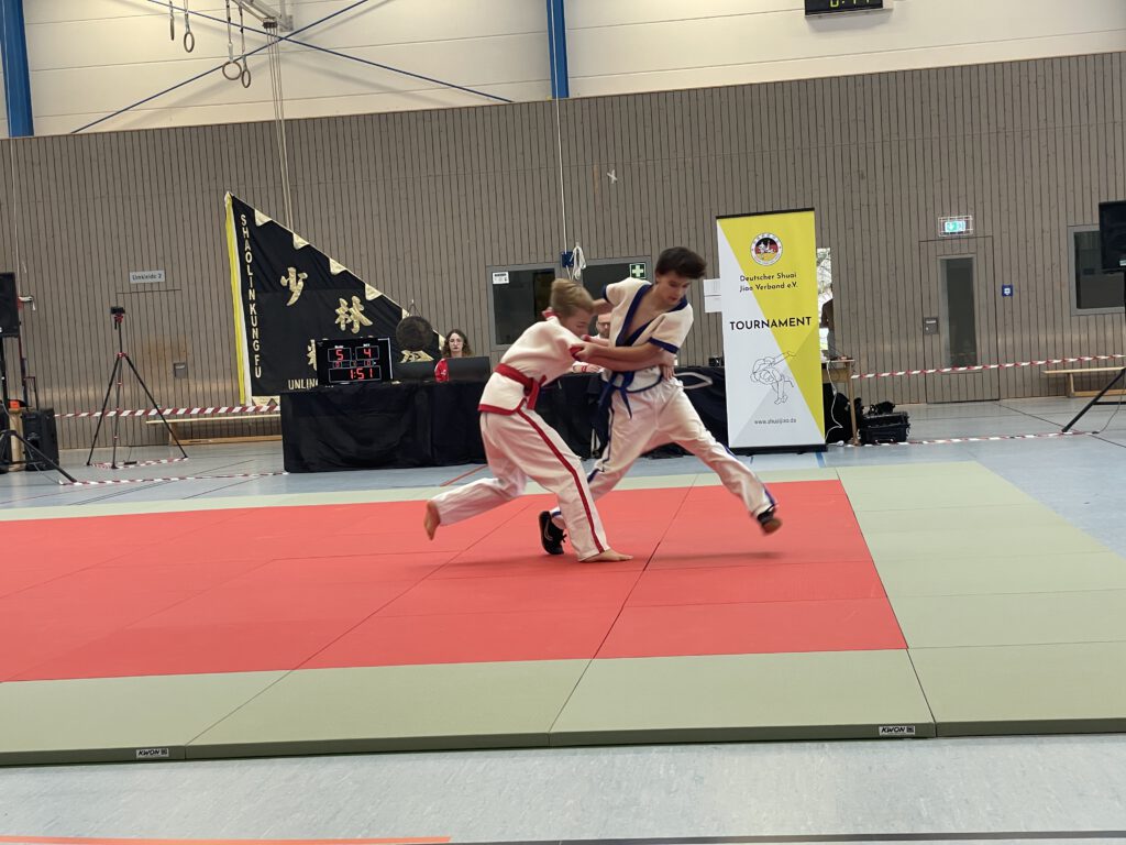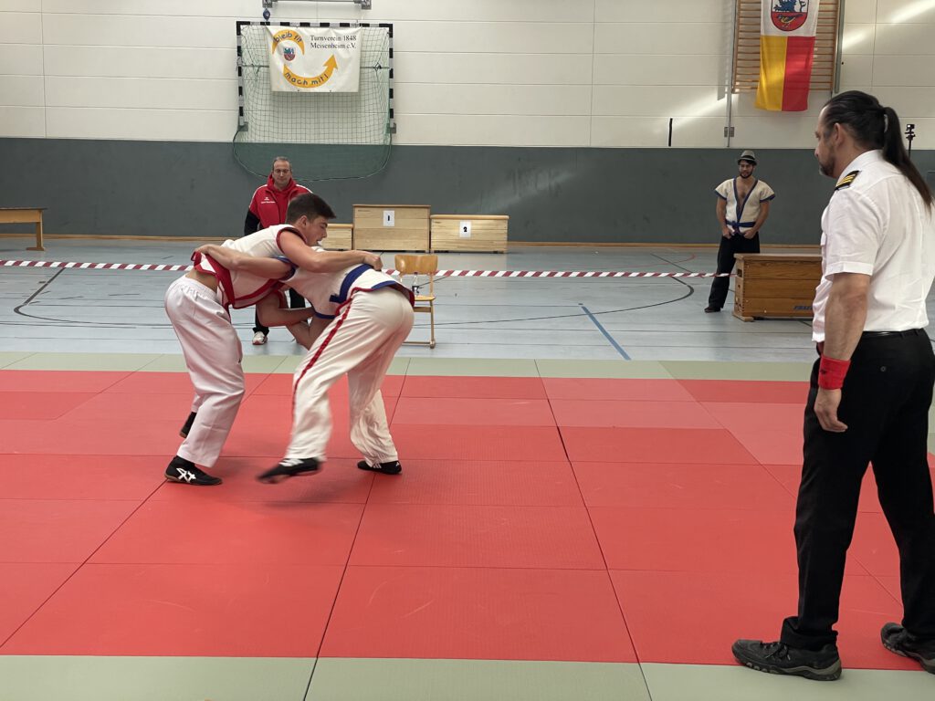 Am Samstag, 29.11.2025, fanden in der großen Halle des PSG die Deutschen Meisterschaften in Shuai Jiao statt. Dazu waren Mannschaften aus Unlingen, Berlin, Pinneberg und Mannheim nach Meisenheim angereist. In jeweils zweimal 3 Minuten dauernden Kämpfen wurden die Deutschen Meister in den verschiedenen Alters- und Gewichtsklassen ermittelt. Die fünf Teilnehmer des TV Meisenheim erzielten dabei hervorragende Ergebnisse: Deutsche Meister in ihren Klassen wurden Nelly Schröder, Levin Radek und Till Neidenbach; Niklas Remest wurde Vizemeister und Luan Pretorius wurde Dritter.