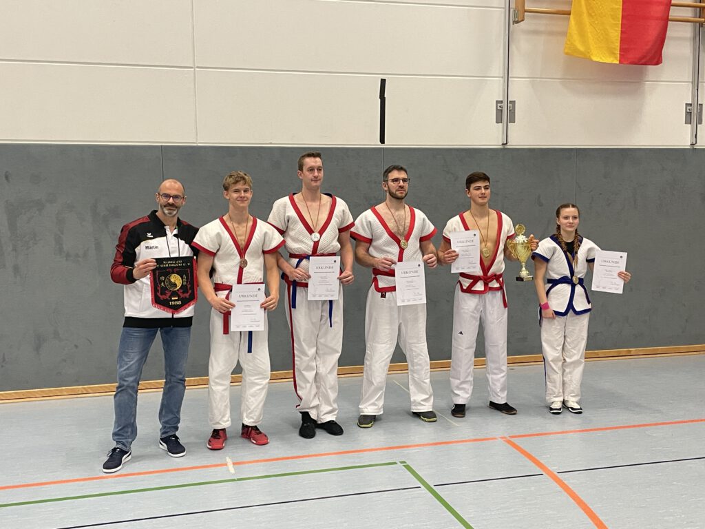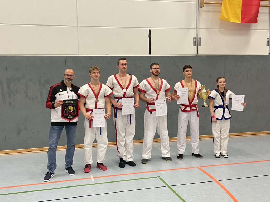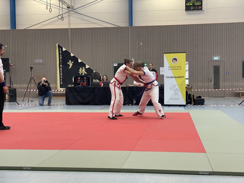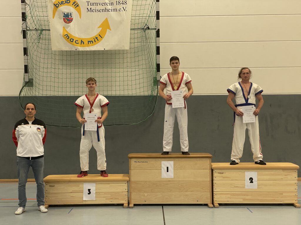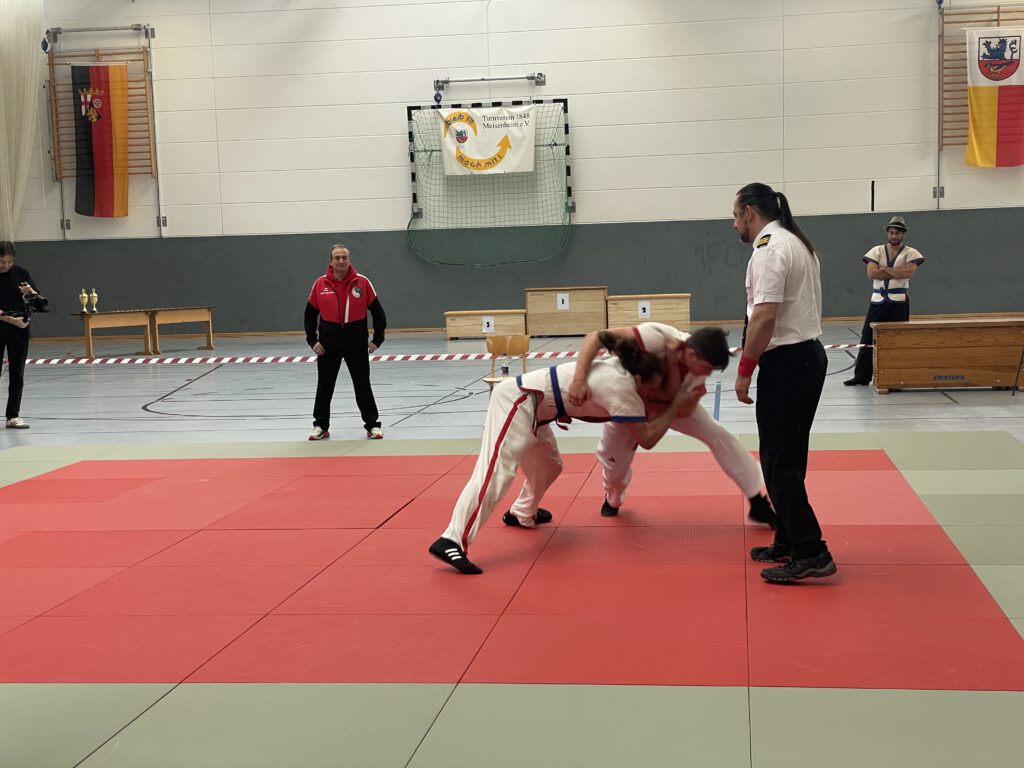 Am Samstag, 29.11.2025, fanden in der großen Halle des PSG die Deutschen Meisterschaften in Shuai Jiao statt. Dazu waren Mannschaften aus Unlingen, Berlin, Pinneberg und Mannheim nach Meisenheim angereist. In jeweils zweimal 3 Minuten dauernden Kämpfen wurden die Deutschen Meister in den verschiedenen Alters- und Gewichtsklassen ermittelt. Die fünf Teilnehmer des TV Meisenheim erzielten dabei hervorragende Ergebnisse: Deutsche Meister in ihren Klassen wurden Nelly Schröder, Levin Radek und Till Neidenbach; Niklas Remest wurde Vizemeister und Luan Pretorius wurde Dritter.