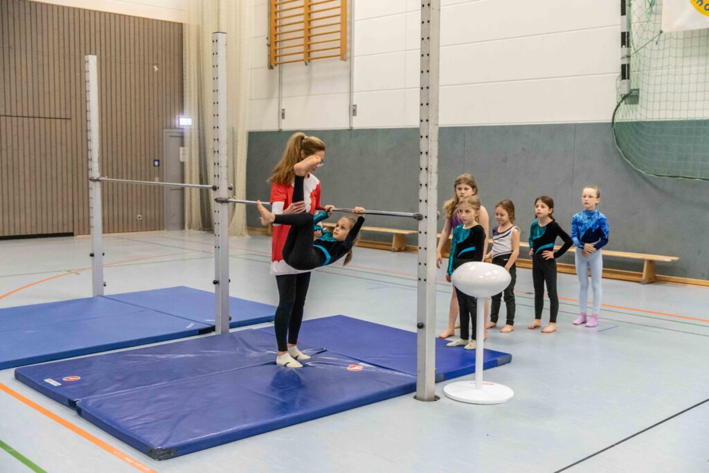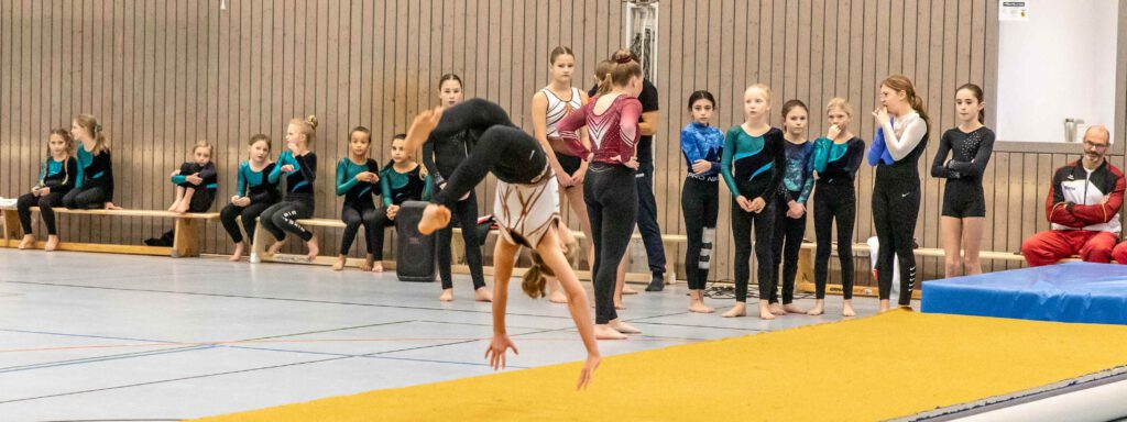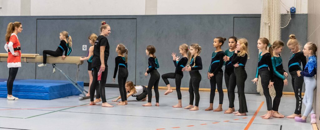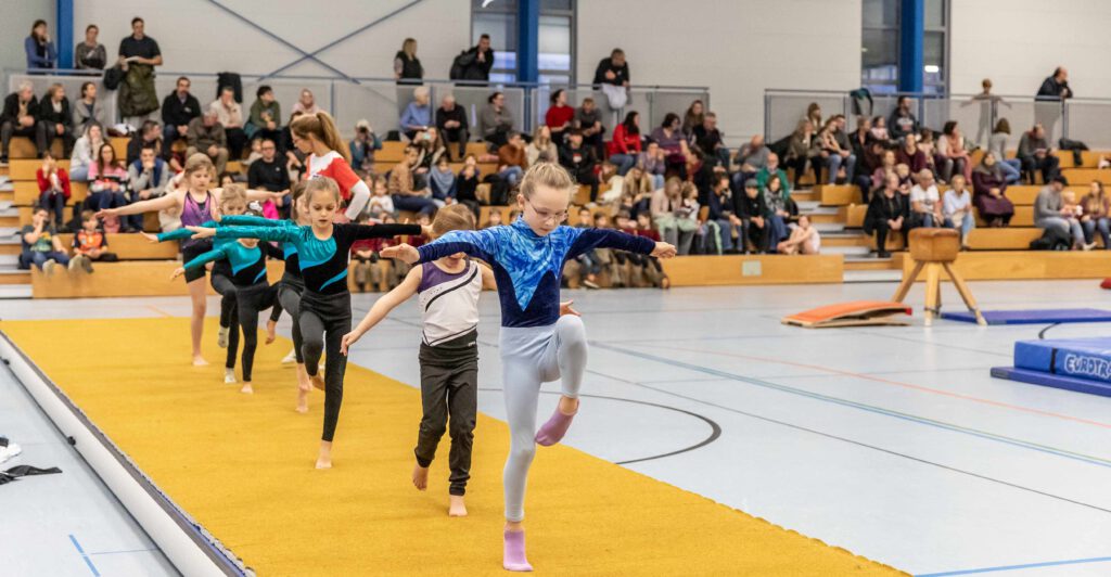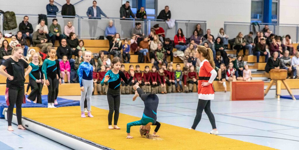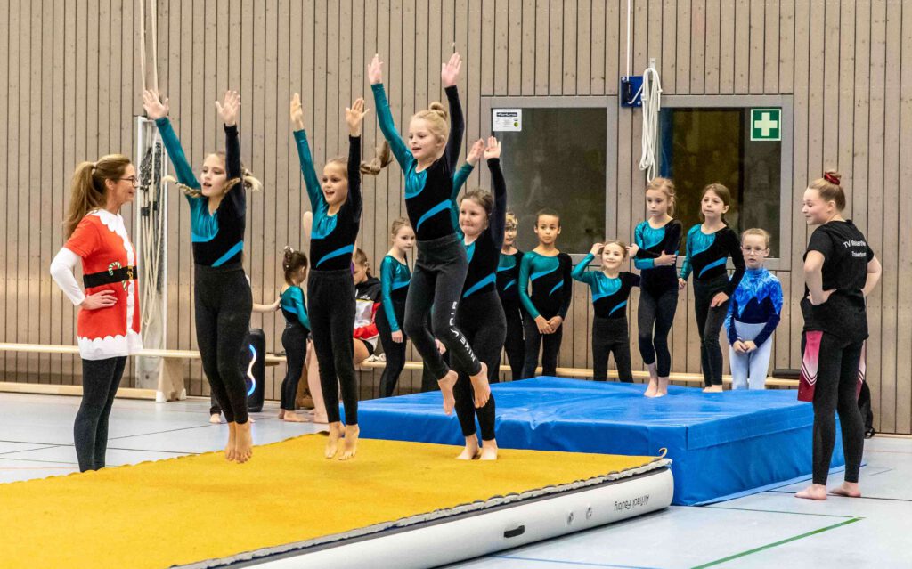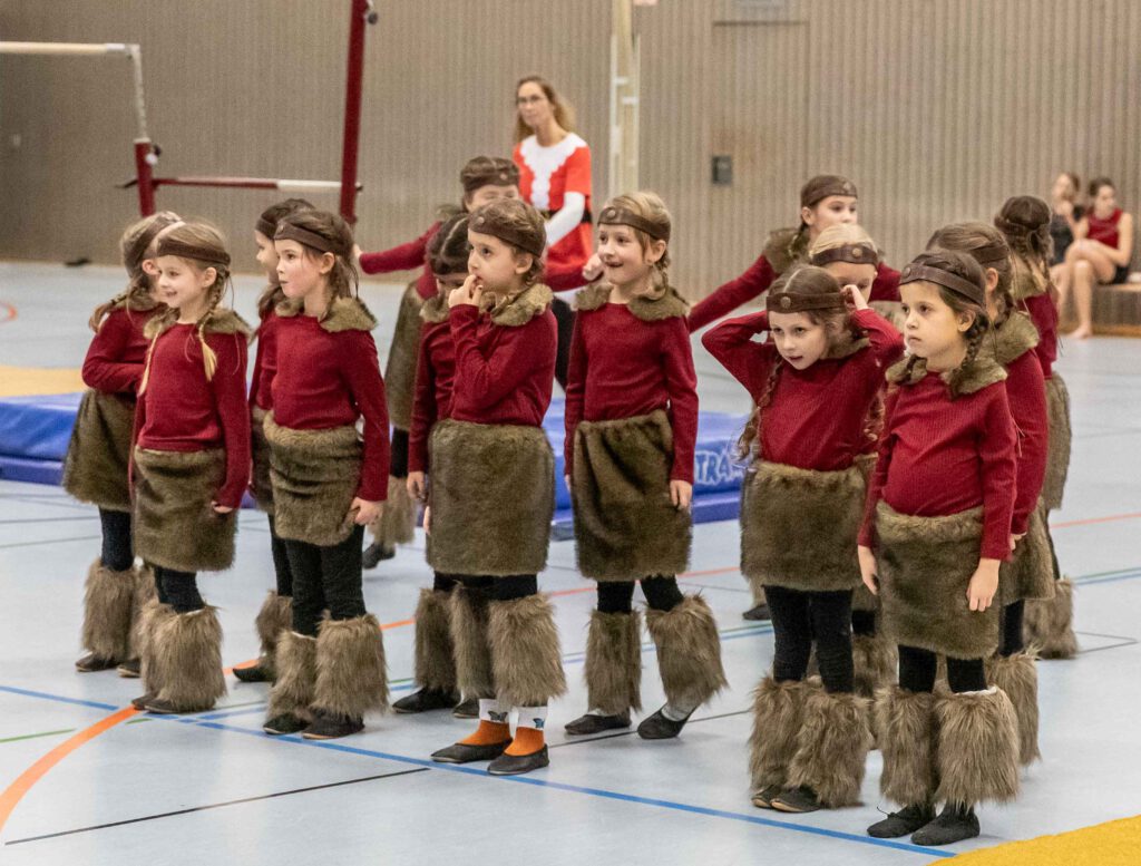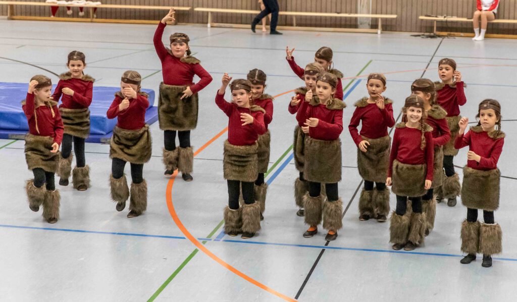 Danach zeigten die Mädchenturngruppen von Nancy und Sebastian Eschmann ihr Können, was mit viel Applaus gewürdigt wurde. Es folgte ein Auftritt der Kleinsten im TV, der Dancing Girls von Andrea Spissu und Michelle Klüter. Sie zeigten in selbstgenähten Wikingerkostümen wie weit sie mit den Vorbereitungen für die kommende Faschingssaison sind.