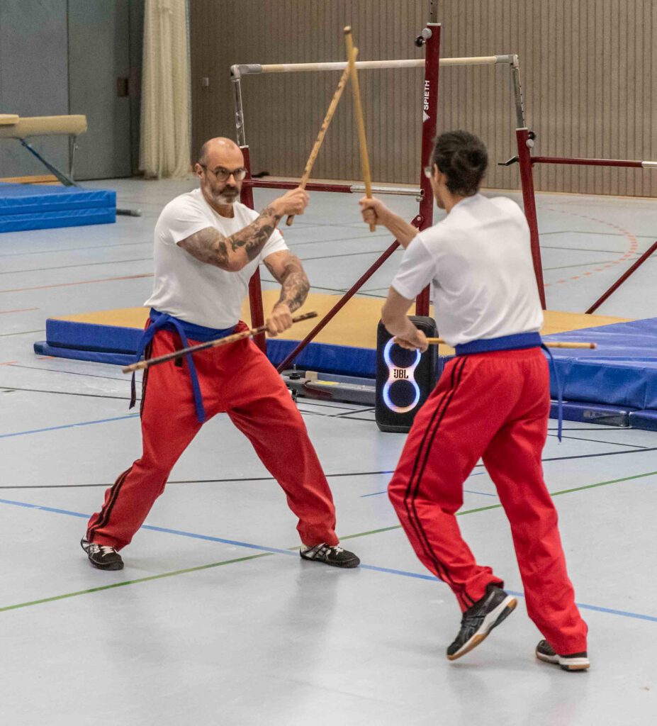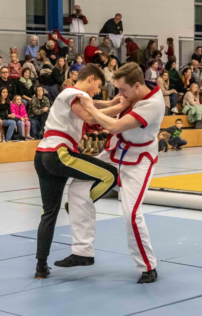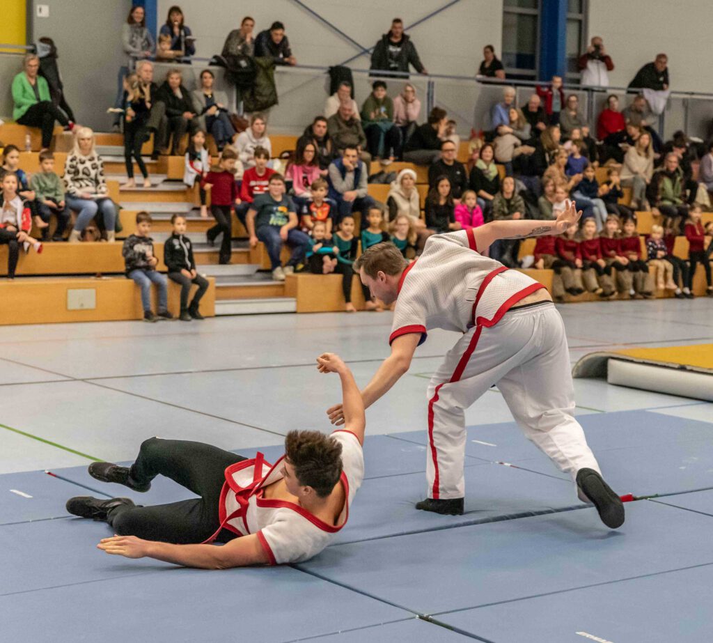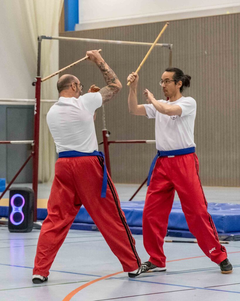 Ein Spektakel war ein Schau-Stockkampf zwischen Martin Schreiner und Christian Pausch vom Modern Arnis e.V aus Mainz. Den Abschluss der Vorführungen machten der Deutsche Meister Levin Radek und der Deutsche Vizemeister Niklas Remest in Shuai Jiao mit einem Schaukampf.